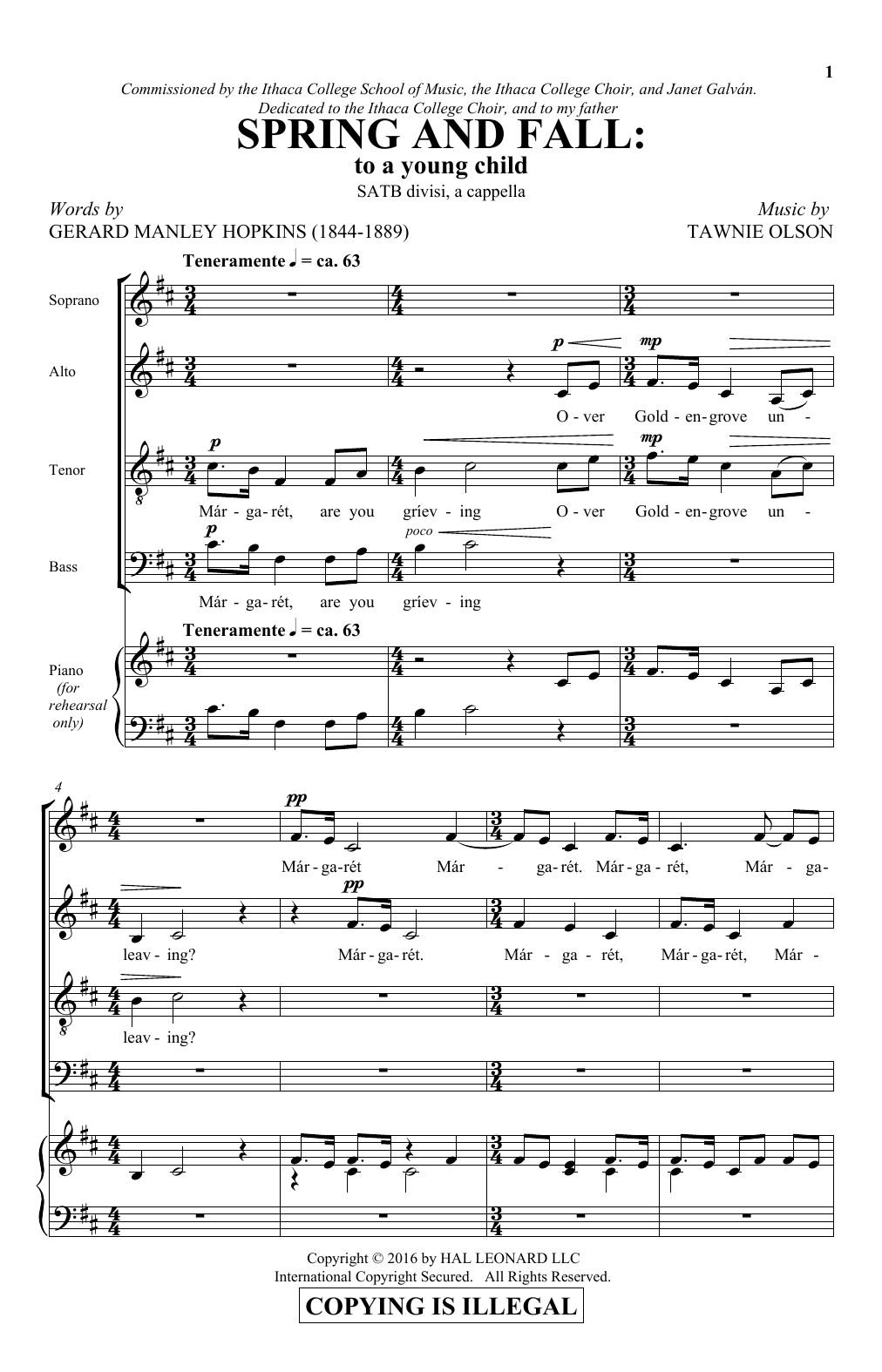 Download or print Tawnie Olson Spring And Fall: To A Young Child sheet music, chords and digital score arranged for SATB Choir. This Concert score includes 14 page(s).