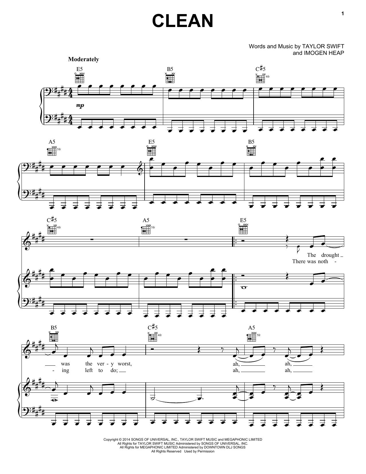 Download or print Taylor Swift Clean sheet music, chords and digital score arranged for Guitar Tab. This Pop score includes 6 page(s).