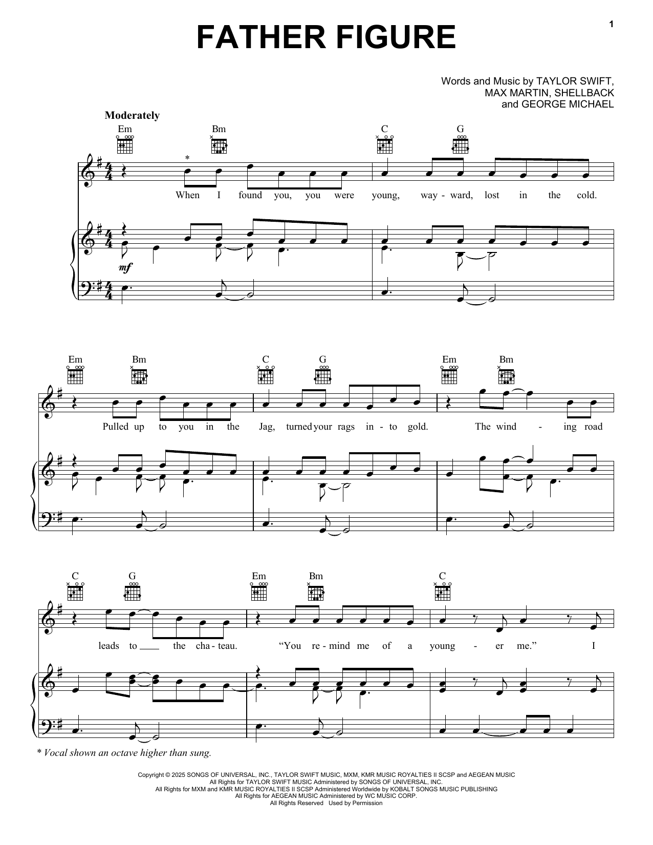 Download or print Taylor Swift Father Figure sheet music, chords and digital score arranged for Easy Piano. This Pop score includes 6 page(s).