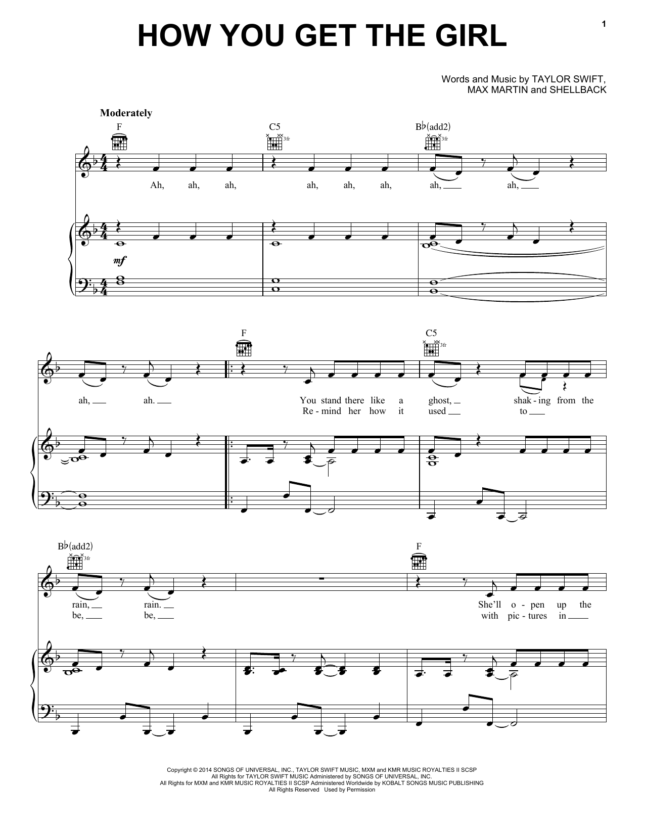 Download or print Taylor Swift How You Get The Girl sheet music, chords and digital score arranged for Easy Piano. This Pop score includes 6 page(s).