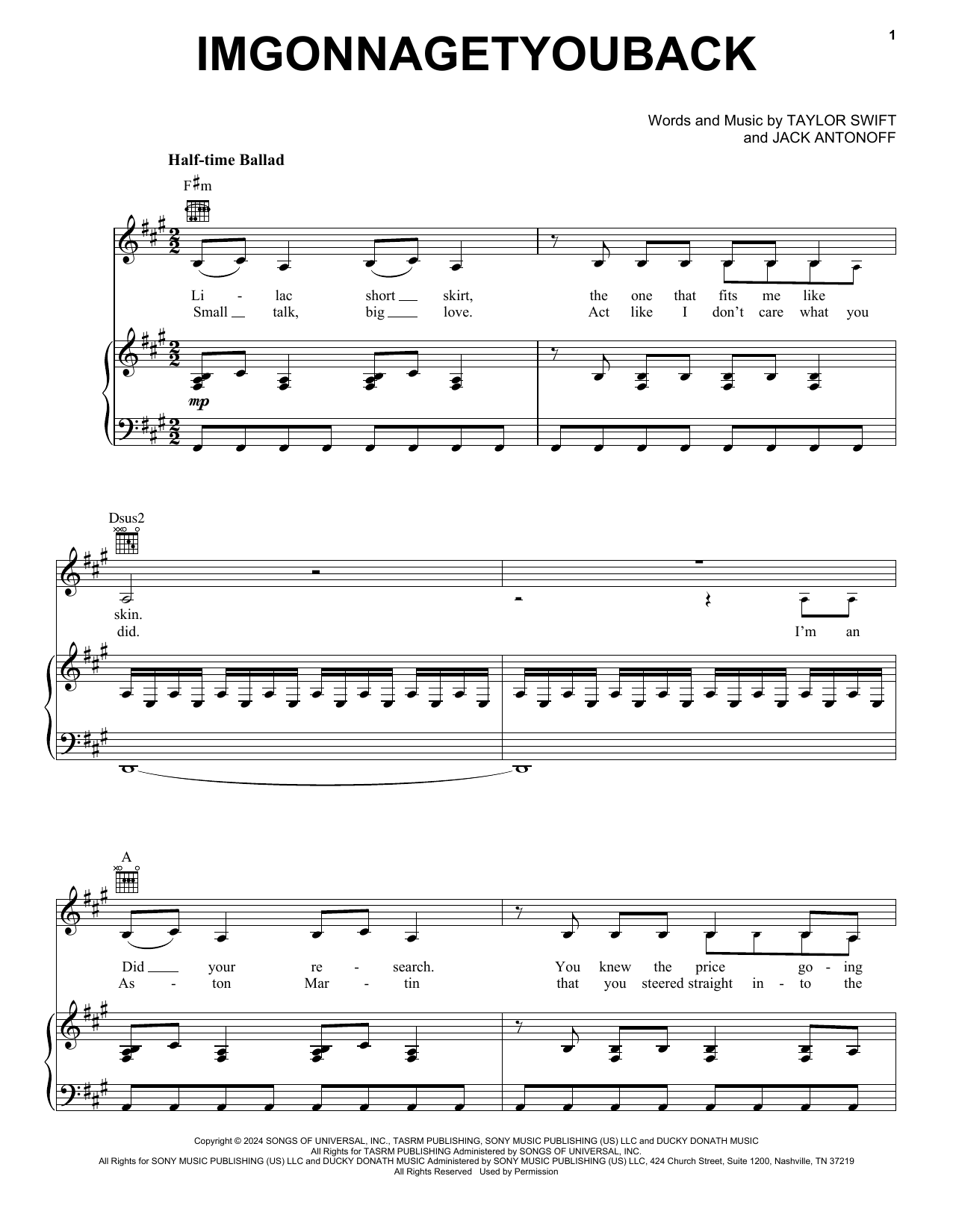 Download or print Taylor Swift imgonnagetyouback sheet music, chords and digital score arranged for Easy Piano. This Pop score includes 6 page(s).