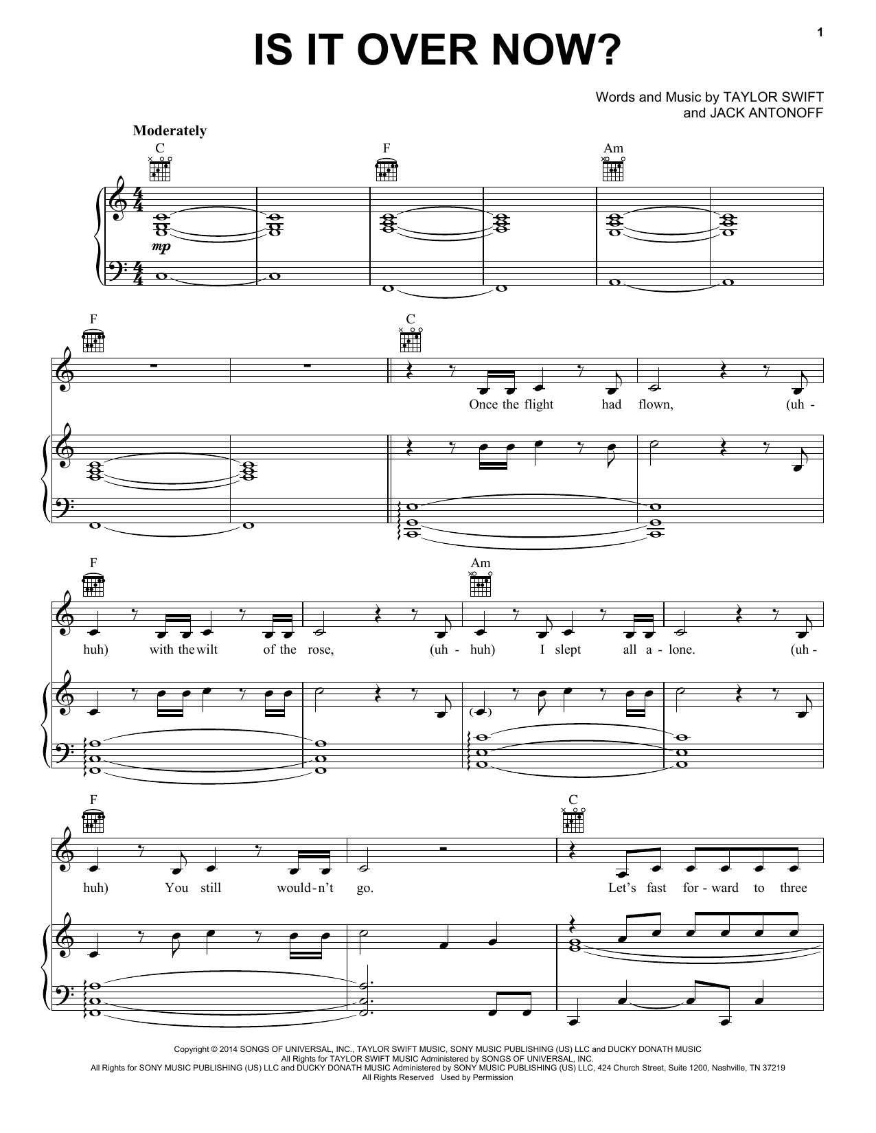 Download or print Taylor Swift Is It Over Now? (Taylor's Version) (From The Vault) sheet music, chords and digital score arranged for Piano, Vocal & Guitar Chords (Right-Hand Melody). This Pop score includes 8 page(s).