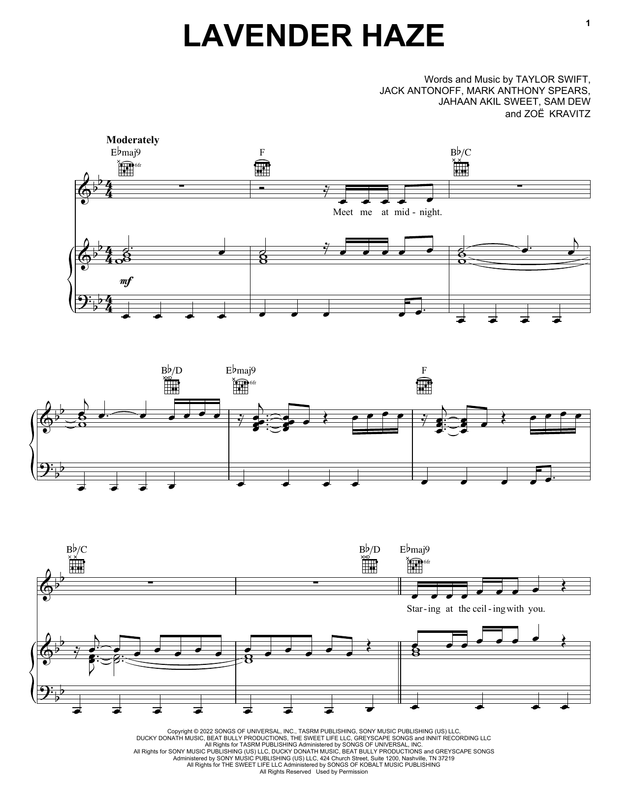 Download or print Taylor Swift Lavender Haze sheet music, chords and digital score arranged for Easy Piano. This Pop score includes 8 page(s).