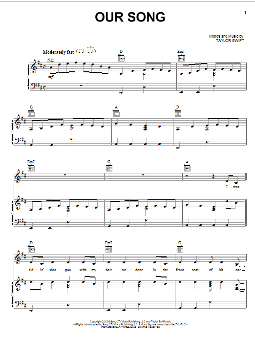 Download or print Taylor Swift Our Song sheet music, chords and digital score arranged for Recorder Solo. This Pop score includes 2 page(s).