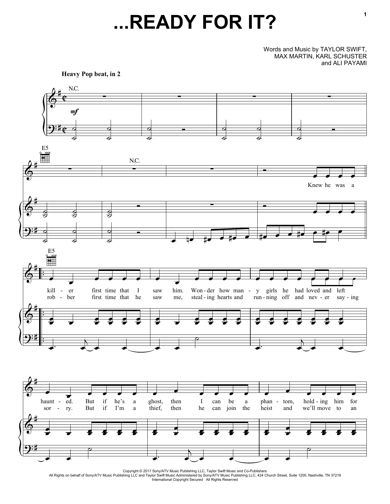 Download or print Taylor Swift ...Ready For It? sheet music, chords and digital score arranged for Guitar Chords/Lyrics. This Pop score includes 3 page(s).