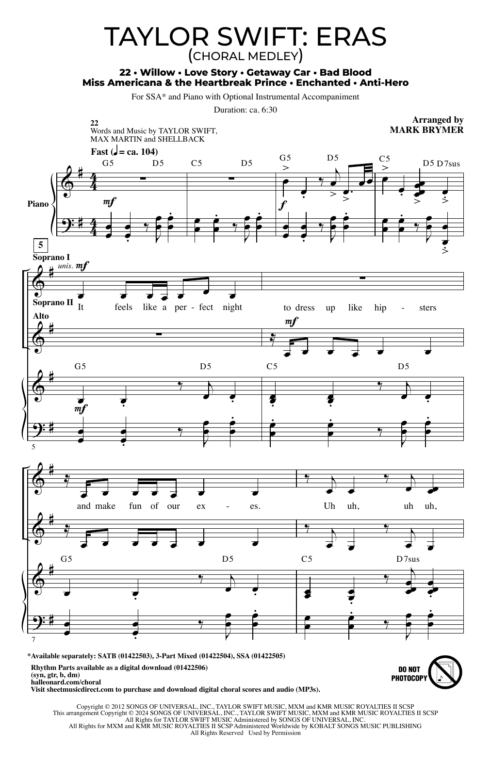 Quick facts Taylor Swift: Eras (Choral Medley) (arr. Mark Brymer) about digital sheet music