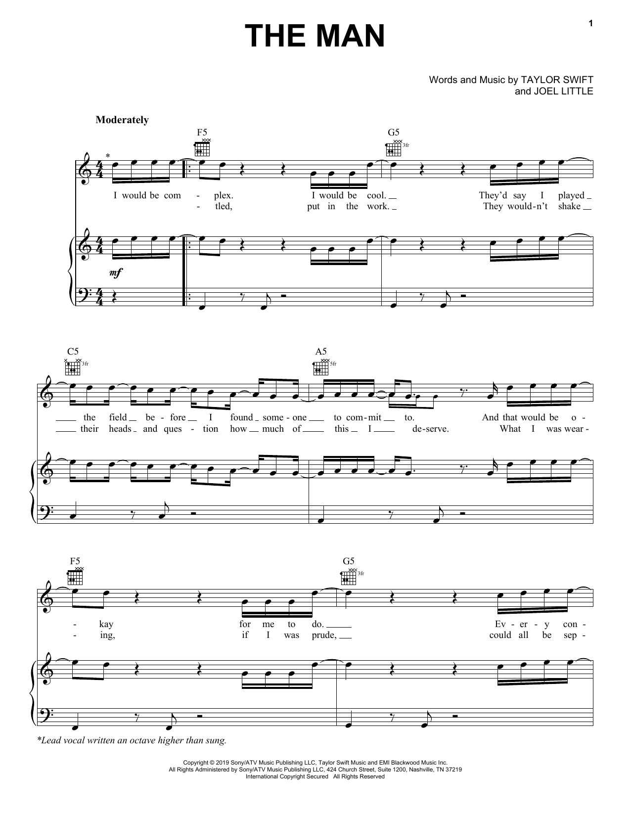 Download or print Taylor Swift The Man sheet music, chords and digital score arranged for Easy Piano. This Pop score includes 5 page(s).