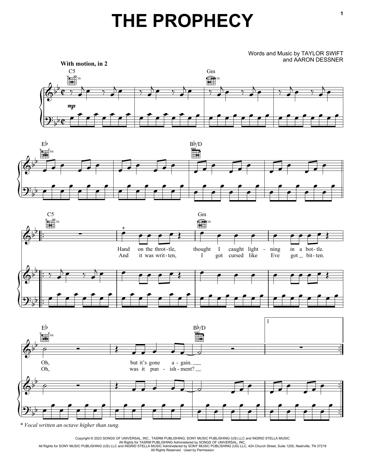 Download or print Taylor Swift The Prophecy sheet music, chords and digital score arranged for Guitar Chords/Lyrics. This Pop score includes 4 page(s).