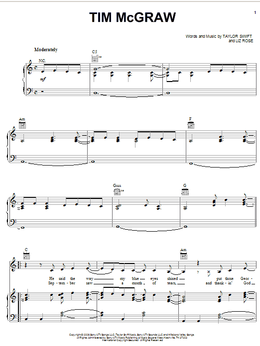 Download or print Taylor Swift Tim McGraw sheet music, chords and digital score arranged for Easy Guitar Tab. This Country score includes 4 page(s).