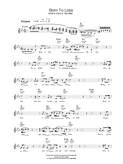 Download or print Ted Daffan Born To Lose sheet music, chords and digital score arranged for Guitar Chords/Lyrics. This Country score includes 2 page(s).