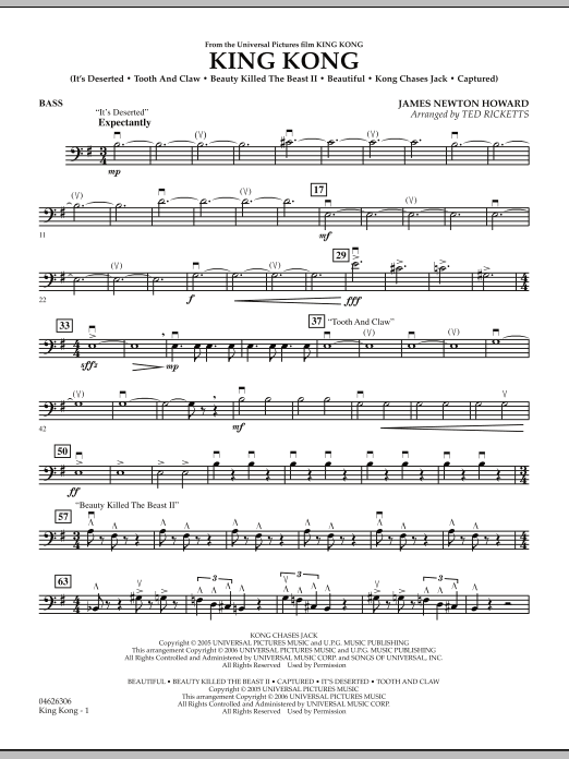Download or print Ted Ricketts King Kong - String Bass sheet music, chords and digital score arranged for Orchestra. This Film/TV score includes 3 page(s).