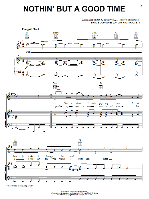 Quick facts Nothin' But A Good Time about digital sheet music