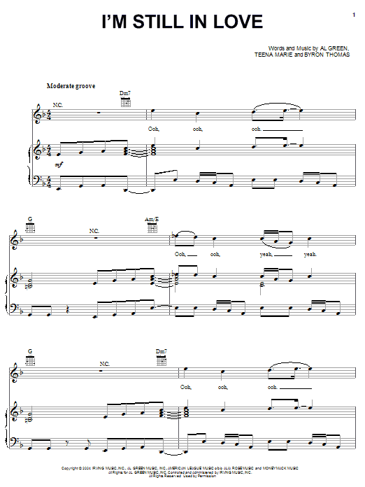 Download or print Teena Marie I'm Still In Love sheet music, chords and digital score arranged for Piano, Vocal & Guitar Chords (Right-Hand Melody). This Pop score includes 7 page(s).