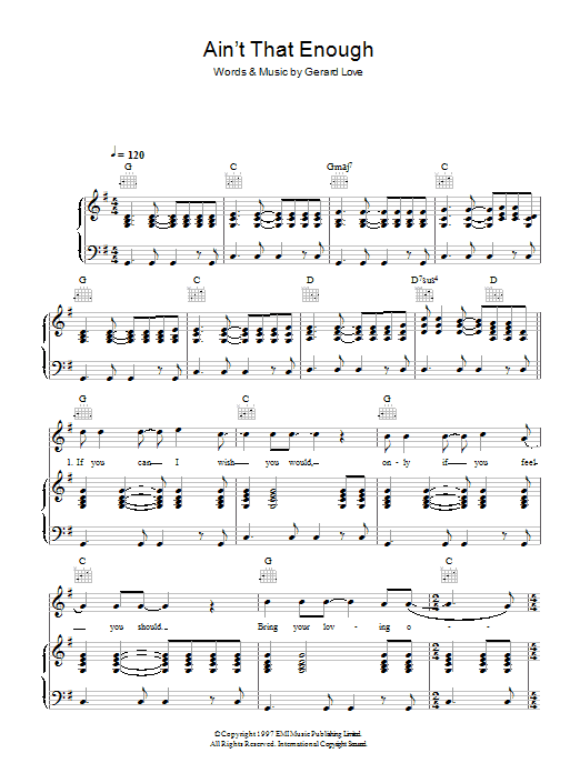 Download or print Teenage Fanclub Ain't That Enough sheet music, chords and digital score arranged for Guitar Chords/Lyrics. This Rock score includes 2 page(s).