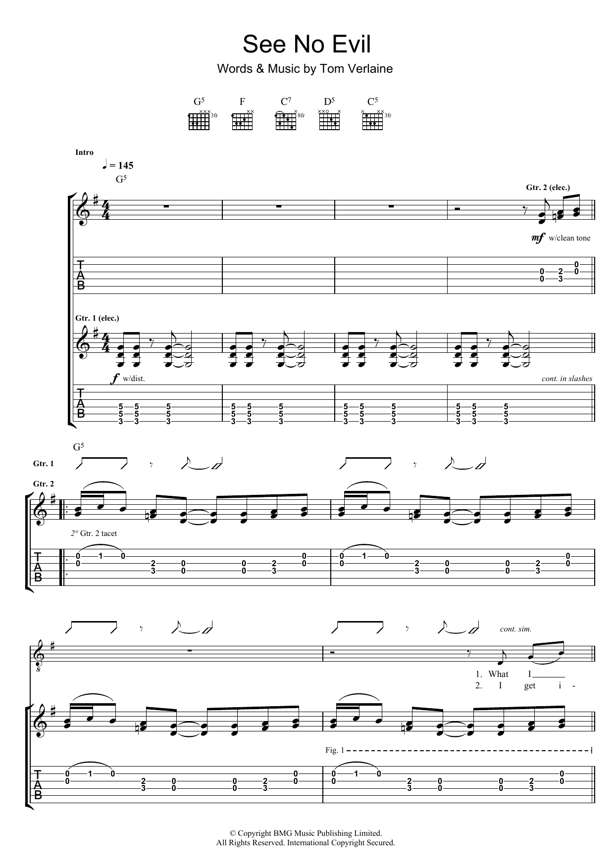 Download or print Television See No Evil sheet music, chords and digital score arranged for Guitar Chords/Lyrics. This Rock score includes 3 page(s).