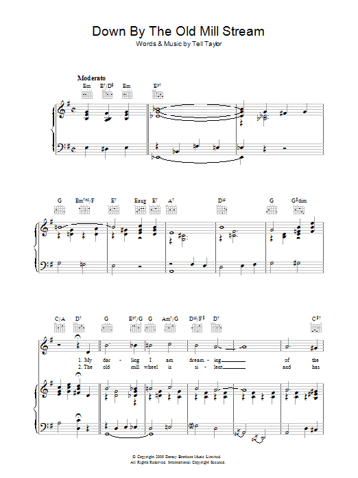 Download or print Tell Taylor Down By The Old Mill Stream sheet music, chords and digital score arranged for Easy Piano. This Children score includes 2 page(s).