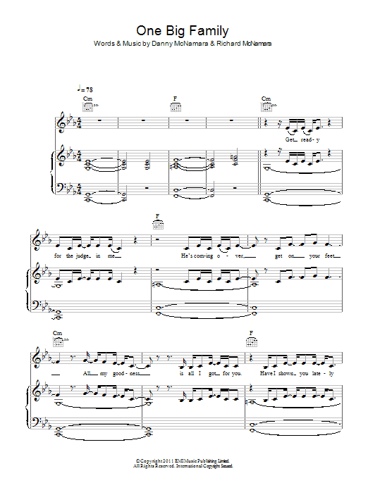 Download or print Templecloud One Big Family sheet music, chords and digital score arranged for Piano, Vocal & Guitar Chords. This Alternative score includes 4 page(s).
