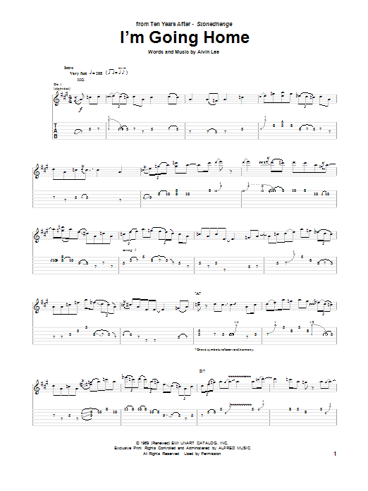 Download or print Ten Years After I'm Going Home sheet music, chords and digital score arranged for Guitar Tab. This Pop score includes 12 page(s).