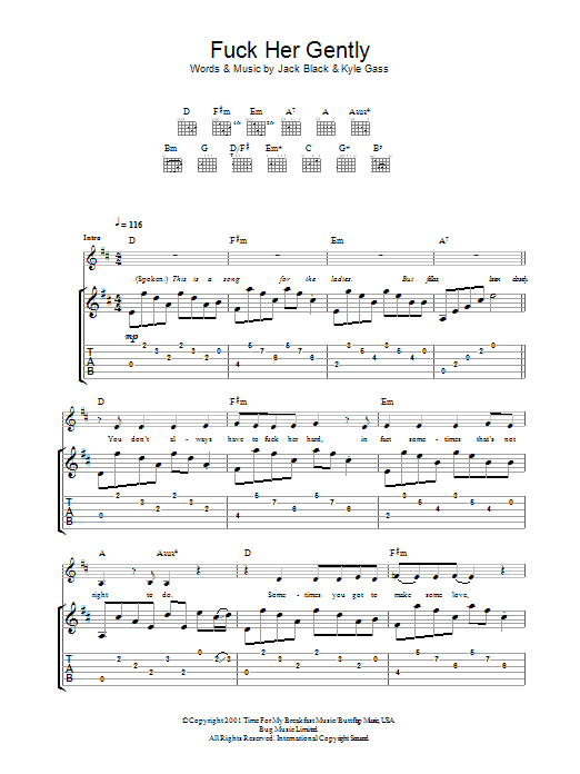 Download or print Tenacious D F*** Her Gently sheet music, chords and digital score arranged for Guitar Tab. This Film/TV score includes 5 page(s).