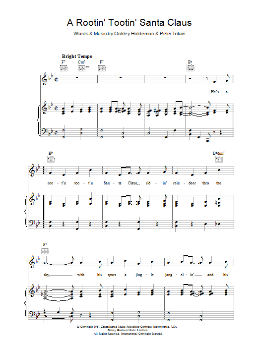 Download or print Tennessee Ernie Ford A Rootin' Tootin' Santa Claus sheet music, chords and digital score arranged for Piano, Vocal & Guitar Chords. This Christmas score includes 4 page(s).