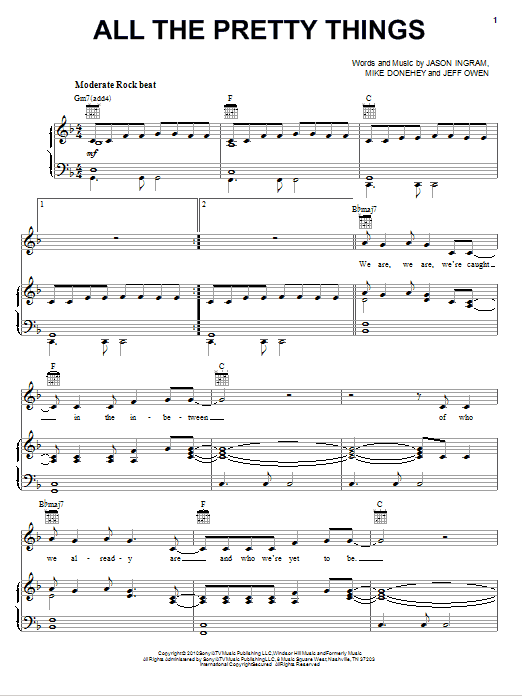 Download or print Tenth Avenue North All The Pretty Things sheet music, chords and digital score arranged for Piano, Vocal & Guitar Chords (Right-Hand Melody). This Christian score includes 9 page(s).