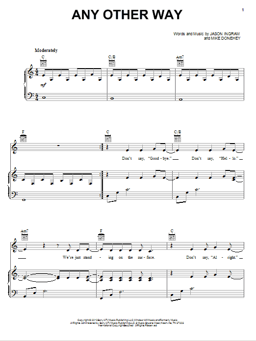 Download or print Tenth Avenue North Any Other Way sheet music, chords and digital score arranged for Piano, Vocal & Guitar Chords (Right-Hand Melody). This Christian score includes 8 page(s).
