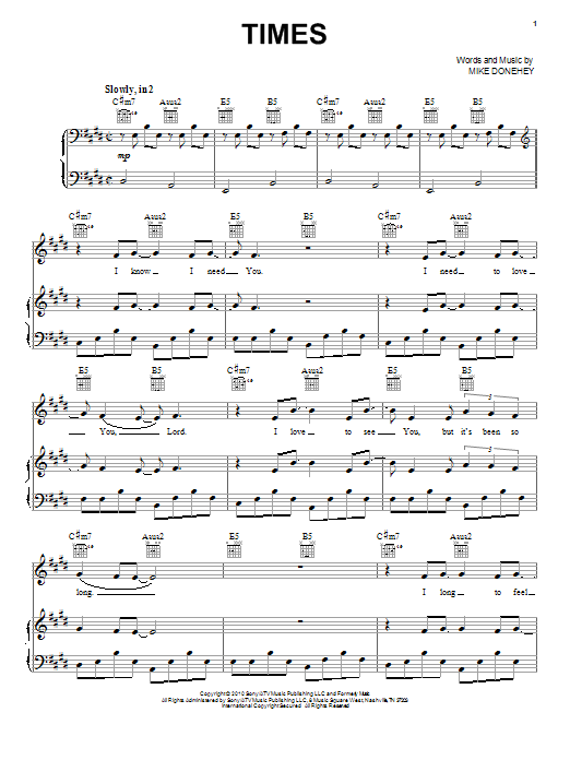 Download or print Tenth Avenue North Times sheet music, chords and digital score arranged for Piano, Vocal & Guitar Chords (Right-Hand Melody). This Christian score includes 8 page(s).