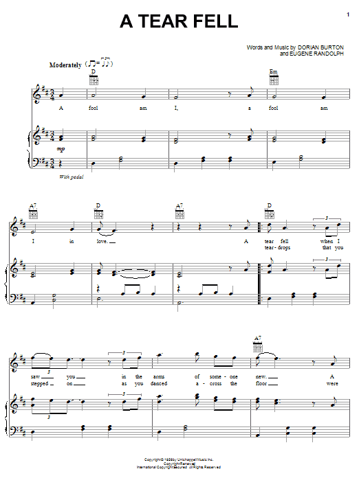 Download or print Teresa Brewer A Tear Fell sheet music, chords and digital score arranged for Lead Sheet / Fake Book. This Pop score includes 1 page(s).