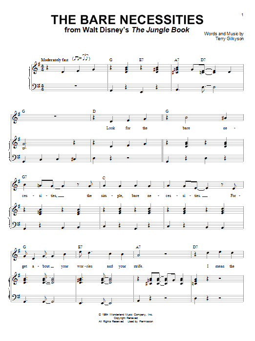 Download or print Terry Gilkyson The Bare Necessities sheet music, chords and digital score arranged for French Horn Solo. This Children score includes 1 page(s).