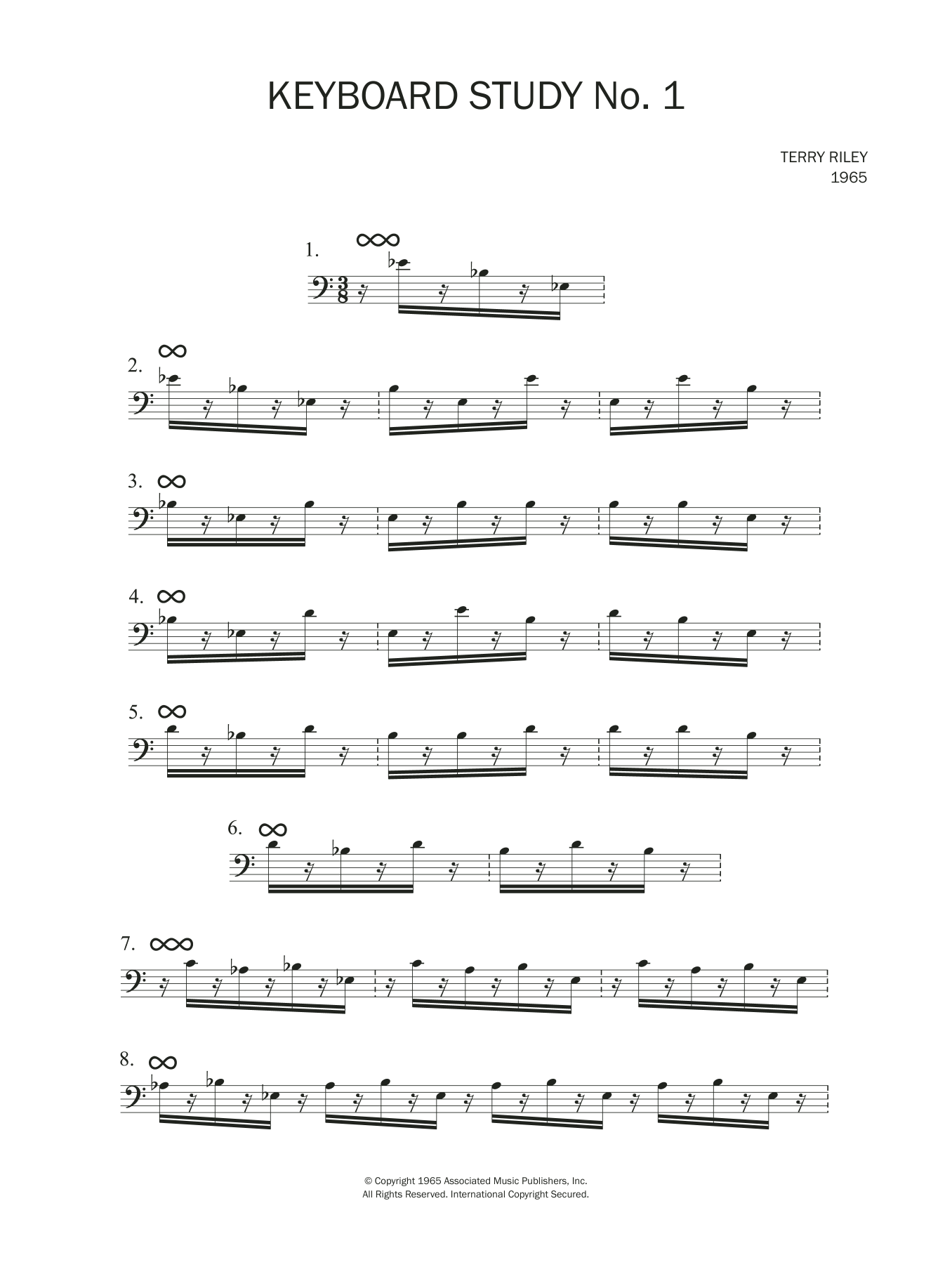 Download or print Terry Riley Keyboard Study No.1 sheet music, chords and digital score arranged for Piano Solo. This Classical score includes 3 page(s).