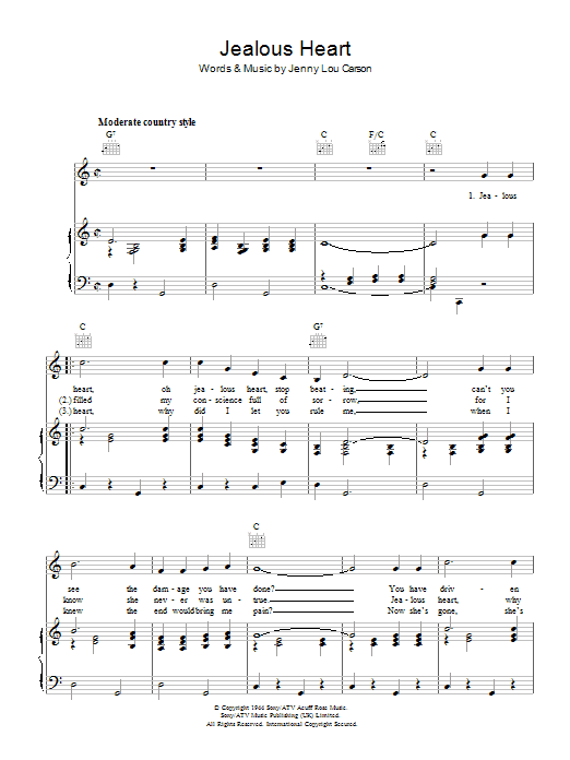 Download or print Tex Ritter Jealous Heart sheet music, chords and digital score arranged for Easy Guitar Tab. This Country score includes 2 page(s).