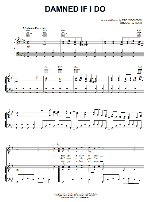 Download or print Alan Parsons Project Damned If I Do sheet music, chords and digital score arranged for Piano, Vocal & Guitar Chords (Right-Hand Melody). This Pop score includes 5 page(s).