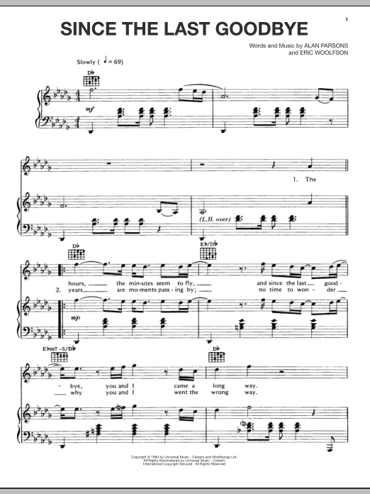 Download or print Alan Parsons Project Since The Last Goodbye sheet music, chords and digital score arranged for Piano, Vocal & Guitar Chords (Right-Hand Melody). This Pop score includes 4 page(s).