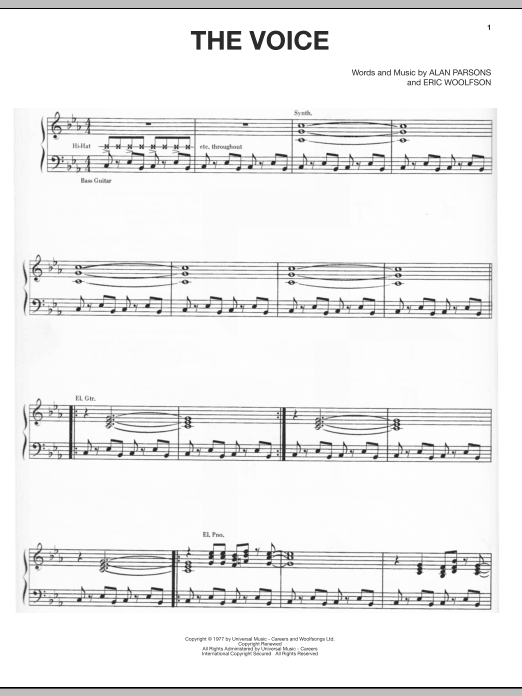 Download or print Alan Parsons Project The Voice sheet music, chords and digital score arranged for Piano, Vocal & Guitar Chords (Right-Hand Melody). This Pop score includes 9 page(s).