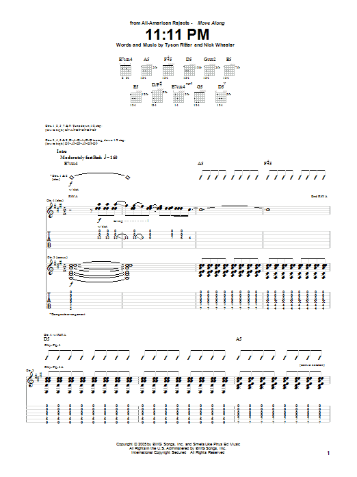 Download or print The All-American Rejects 11:11 PM sheet music, chords and digital score arranged for Guitar Tab. This Pop score includes 11 page(s).