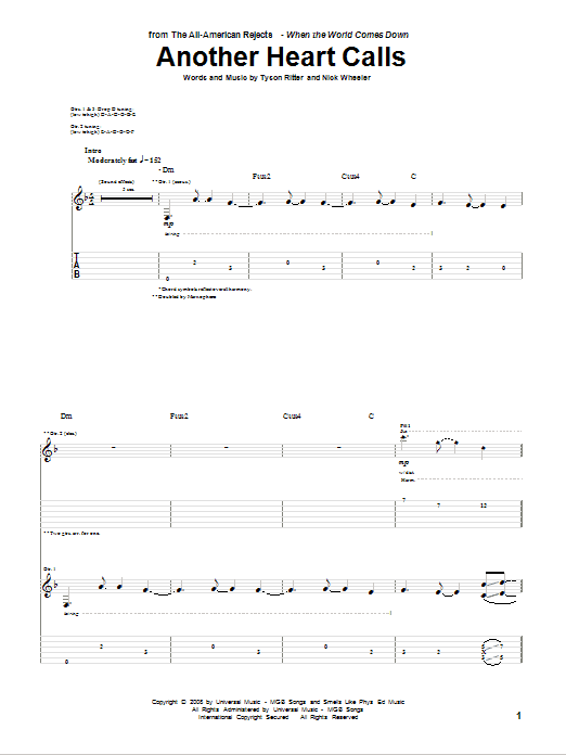 Download or print The All-American Rejects Another Heart Calls sheet music, chords and digital score arranged for Guitar Tab. This Pop score includes 19 page(s).