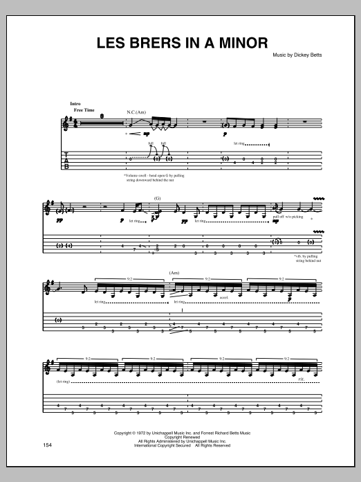 Download or print Allman Brothers Band Les Brers In A Minor sheet music, chords and digital score arranged for Guitar Tab. This Blues score includes 9 page(s).