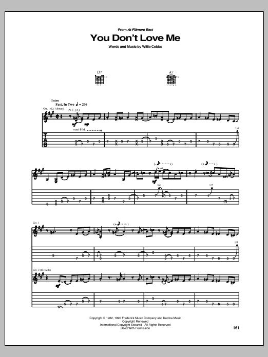 Download or print Allman Brothers Band You Don't Love Me sheet music, chords and digital score arranged for Guitar Tab. This Blues score includes 38 page(s).