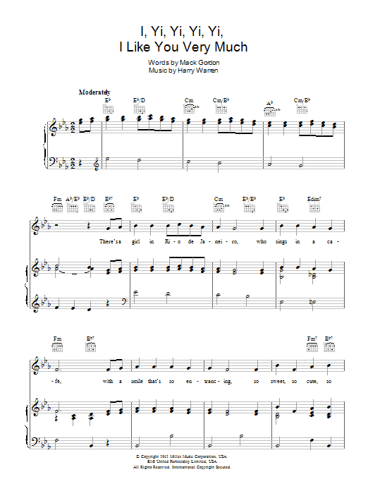 Download or print The Andrews Sisters I Yi, Yi, Yi, Yi (Like You Very Much) sheet music, chords and digital score arranged for Piano, Vocal & Guitar Chords. This Standards score includes 7 page(s).