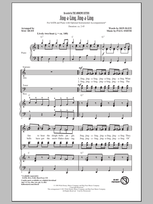 Download or print Mac Huff Jing-A-Ling, Jing-A-Ling sheet music, chords and digital score arranged for SAB Choir. This Novelty score includes 4 page(s).