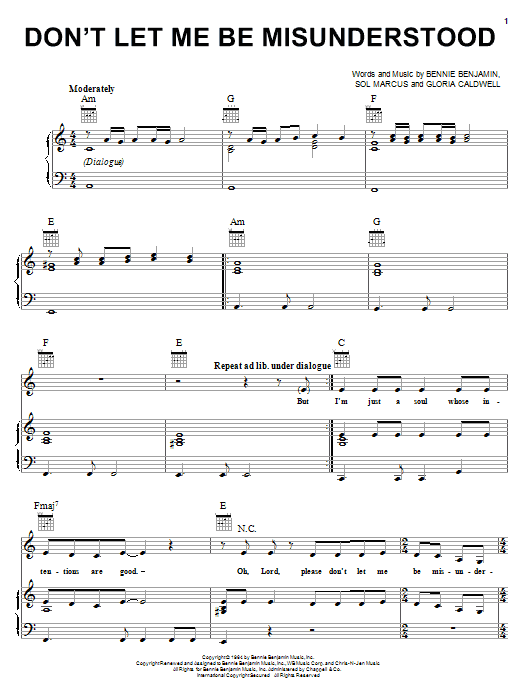 Quick facts Don't Let Me Be Misunderstood about digital sheet music