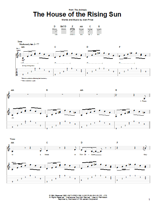 Download or print The Animals The House Of The Rising Sun sheet music, chords and digital score arranged for Mandolin. This Pop score includes 2 page(s).