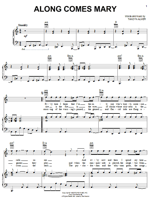 Download or print The Association Along Comes Mary sheet music, chords and digital score arranged for Lead Sheet / Fake Book. This Pop score includes 2 page(s).
