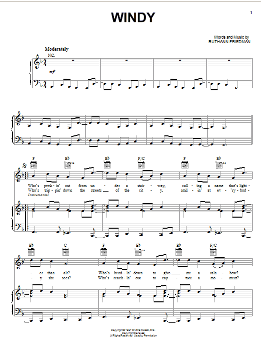 Download or print The Association Windy sheet music, chords and digital score arranged for Lead Sheet / Fake Book. This Pop score includes 2 page(s).