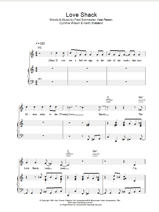 Download or print The B-52's Love Shack sheet music, chords and digital score arranged for Piano, Vocal & Guitar Chords. This Pop score includes 10 page(s).