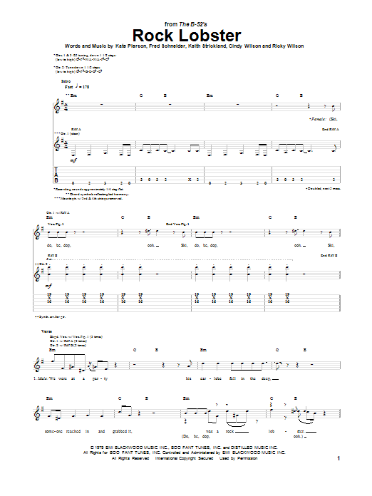 Quick facts Rock Lobster about digital sheet music