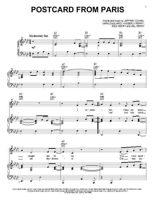 Download or print The Band Perry Postcard From Paris sheet music, chords and digital score arranged for Piano, Vocal & Guitar Chords (Right-Hand Melody). This Pop score includes 6 page(s).