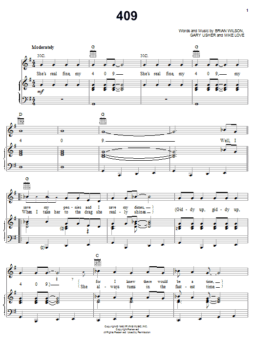 Download or print The Beach Boys 409 sheet music, chords and digital score arranged for Lead Sheet / Fake Book. This Pop score includes 3 page(s).