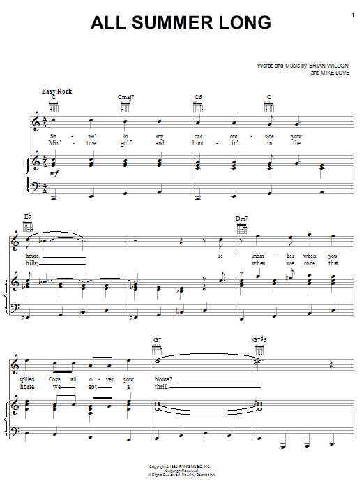 Download or print The Beach Boys All Summer Long sheet music, chords and digital score arranged for Piano, Vocal & Guitar Chords (Right-Hand Melody). This Oldies score includes 3 page(s).