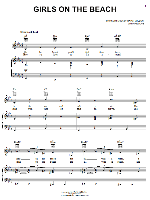 Download or print The Beach Boys Girls On The Beach sheet music, chords and digital score arranged for Lead Sheet / Fake Book. This Pop score includes 2 page(s).